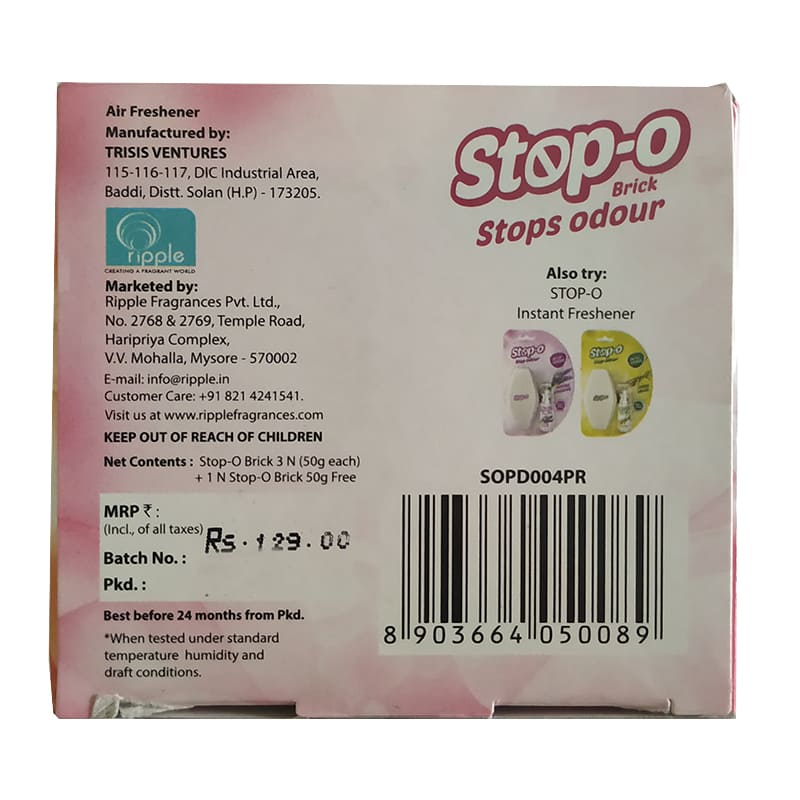 Pack Contents3 Nos Stop-O Toilet Brick (50g each), 1 No. Stop-O Toilet Brick (50g) - Free