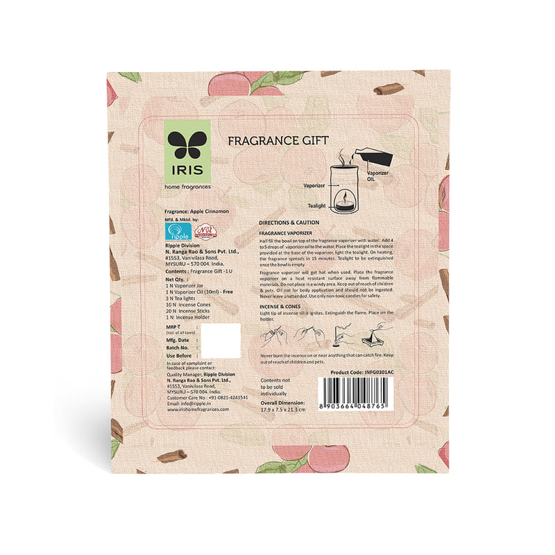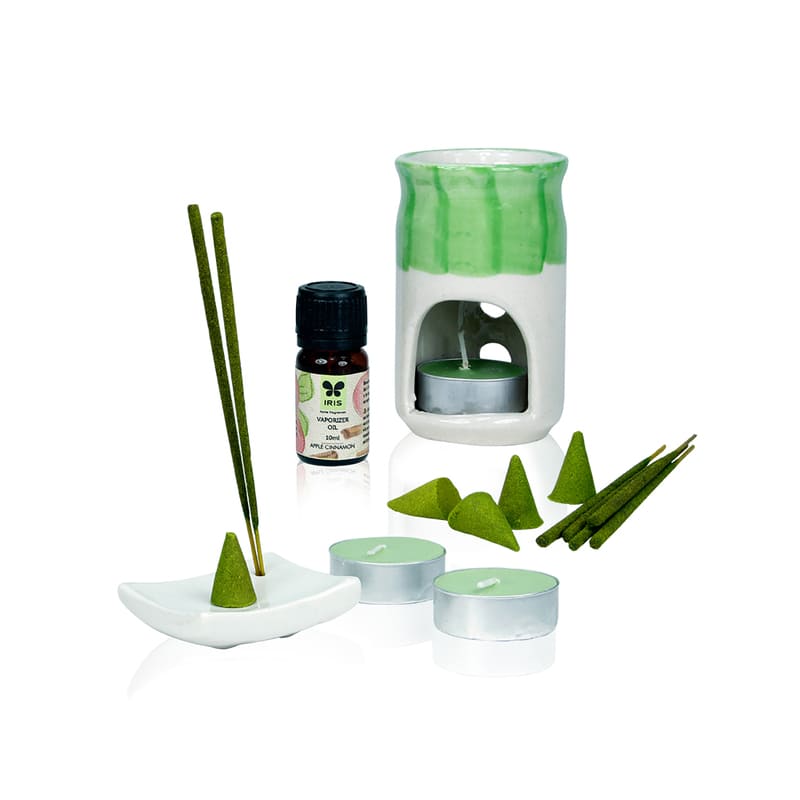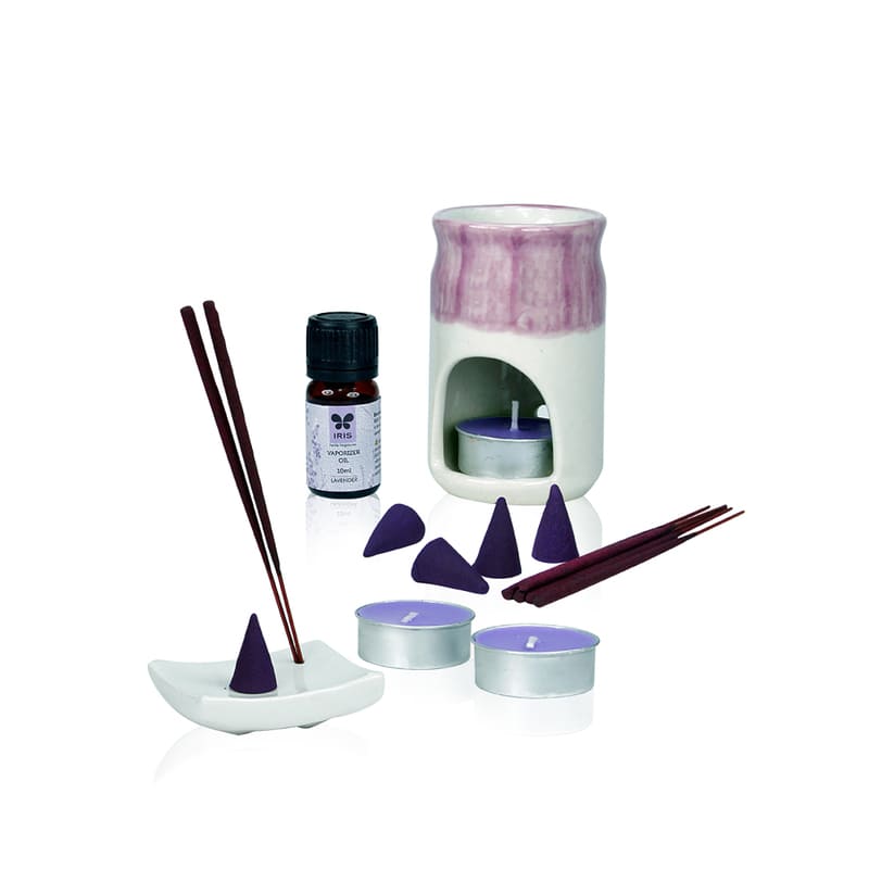 | Pack Contents | Incense Sticks - 20N, Incense Cones - 10N, Vaporizer Oil - 10ml, Tealights - 3N, Vaporizer - 1N, Incense Holder - 1N |