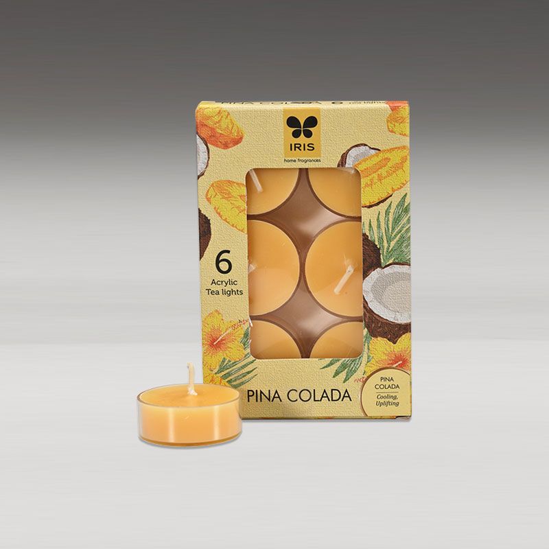 Pack of 6 acrylic cup coloured & scented Tea Lights. Made from purest of wax and an exotic blend of essential oils - all brought together to create the most exquisite handcrafted aroma candles, which are smokeless and dripless.