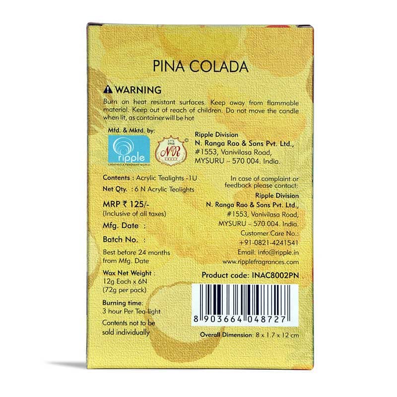 | Net Quantity | 6 Nos Acrylic Tea Lights (12g each) |