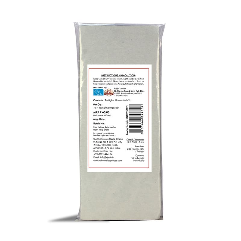 | Pack Contents | 10 Nos Tea-lights (10g each) |