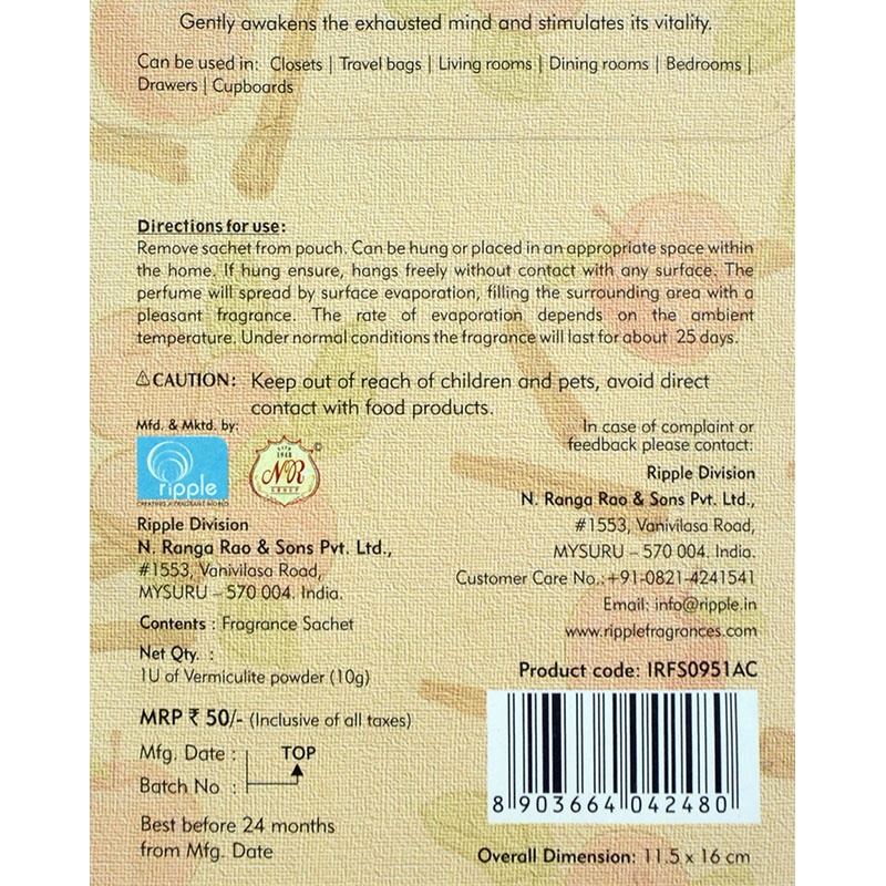 Fragrance sachet with vermiculite powder which gently releases fragrance in the air. They are ideal for fragrancing small spaces. Place them in Wardrobes, Cupboards, drawers and travel bags.