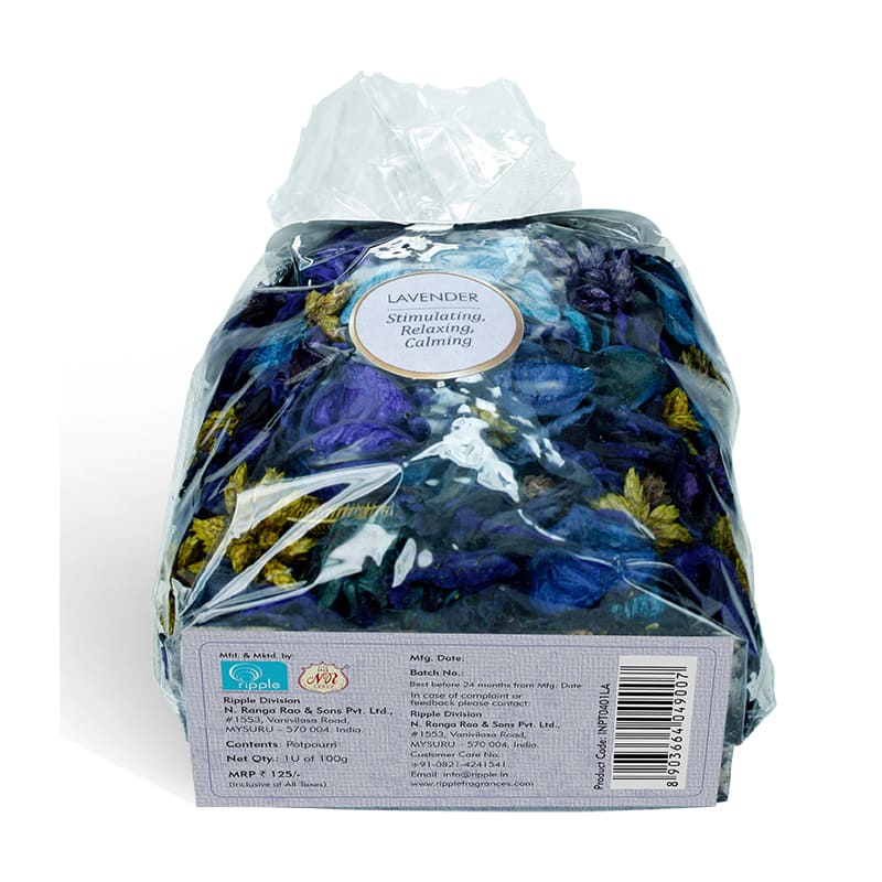 Potpourri is a mixture of dried plant material fragranced to provide a gentle aroma. Punch holes in the pouch or empty the content into an open container. Fragrance will last for 15 days effectively. To restore fragrance, refresher oil spray bottles are available. In case of unavailability, contact customer care.