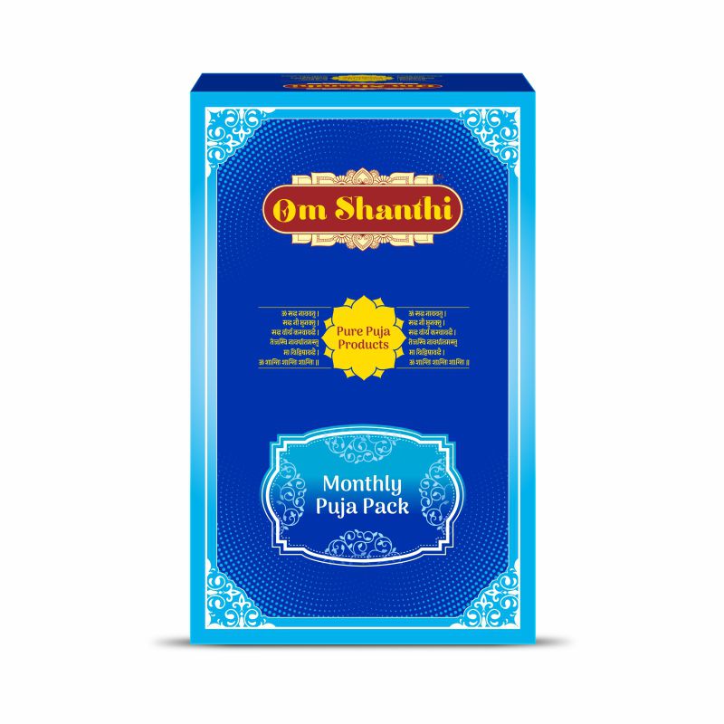 Om Shanthi Monthly Puja Pack is made to ensure the supply of basic essentials for daily puja for 30 days. Pooja oil, wicks (bathi),  agarbathi, camphor, Chandan tika, loban, kumkum, turmeric and cup sambrani have been included in the pack to assist you in your pooja rituals for a month.