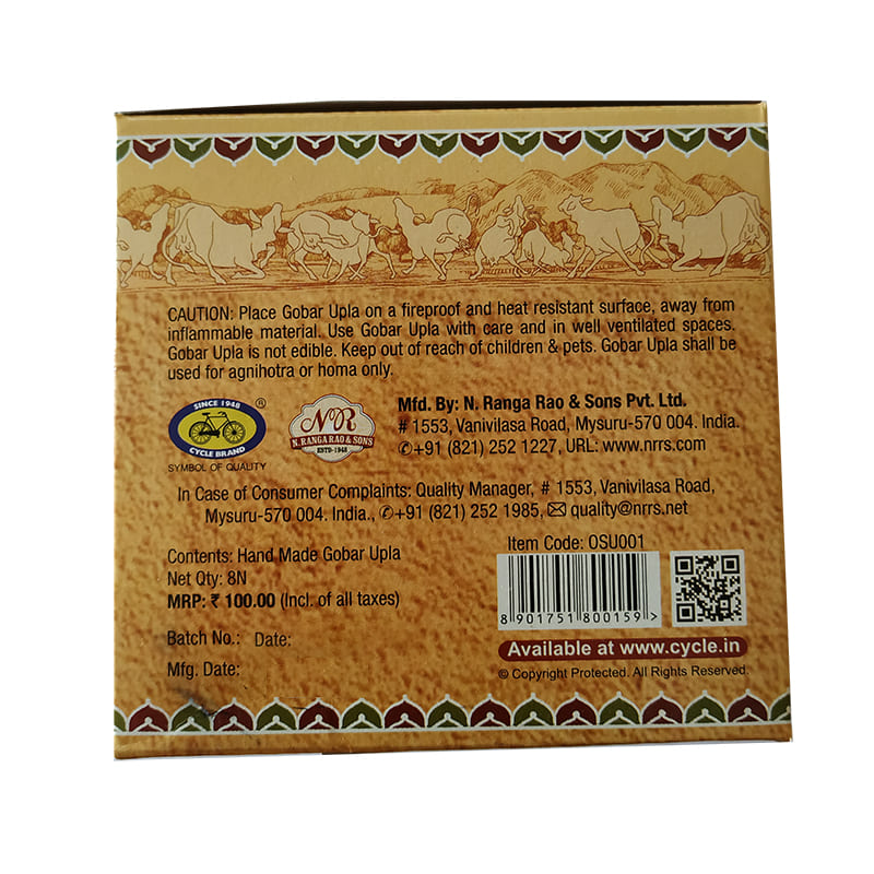 meaning; Cow dung draws fragrance of any kind into itself making the surroundings pure and odour free. Nothing can overcome the power of Gomaya. It is ever enriching & strengthens as it dries. Gomaya monitors all five elements of life.